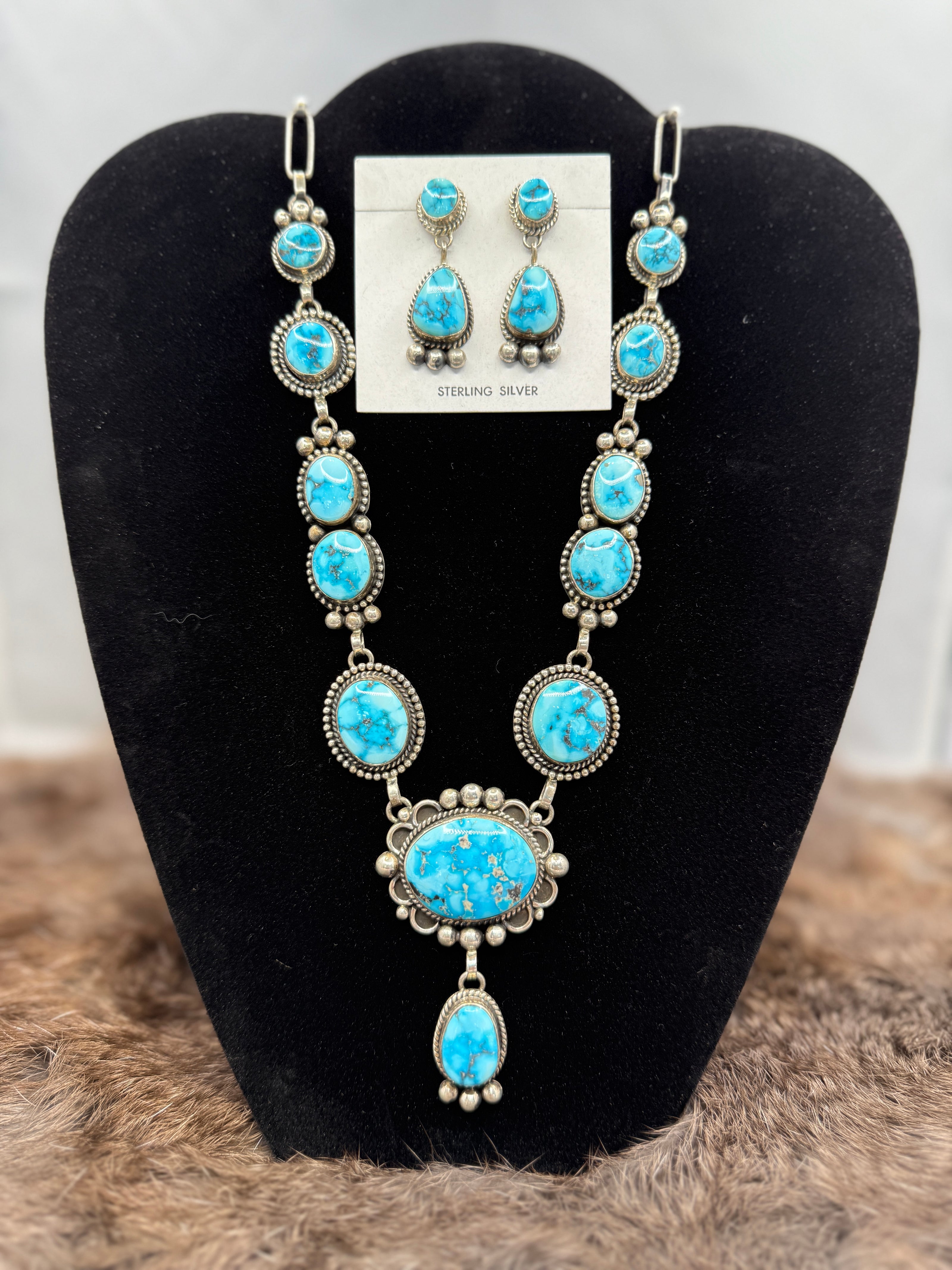 Turquoise squash blossom and earrings set made by Thomas Francisco.