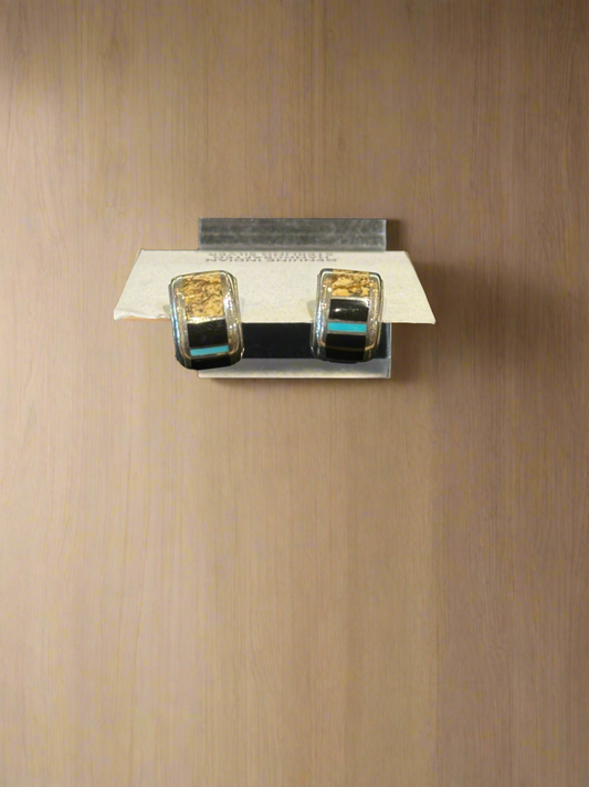 Native Earth rectangle pendent with Black Jade and Tigers Eye and Picture Jasper.