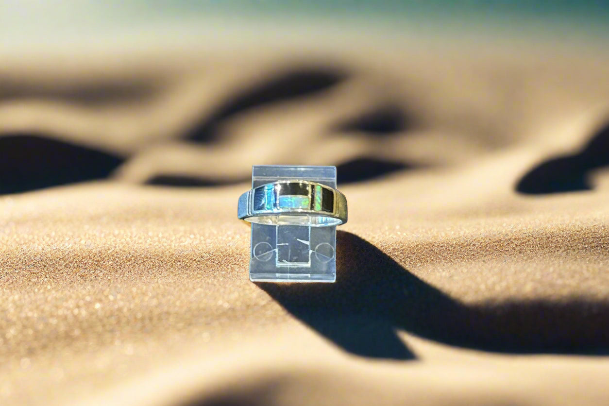 Indulge in beauty and luxury with our Black Jade ring by Super Smith, embellished with a stunning white opal. This exclusive piece exudes sophistication and elegance, making it a must-have addition to your collection. Experience the allure of black jade and the radiance of opal in one exquisite ring.