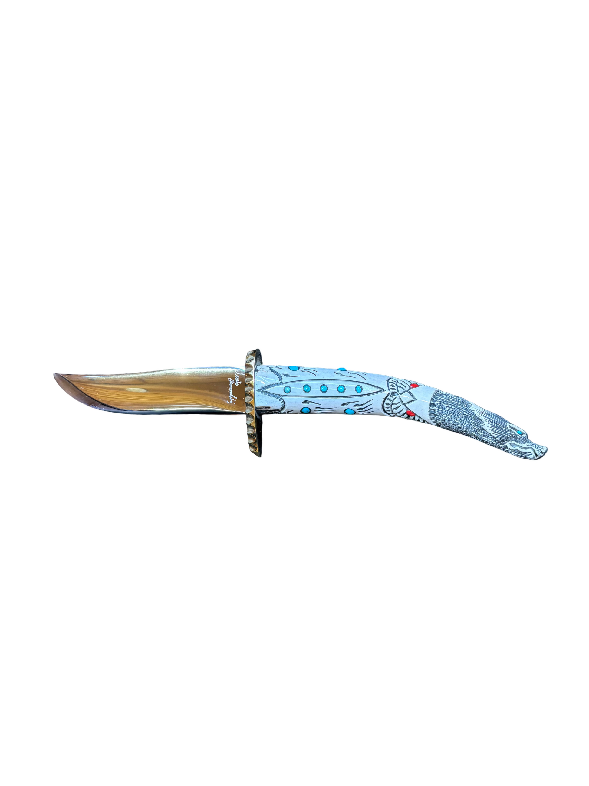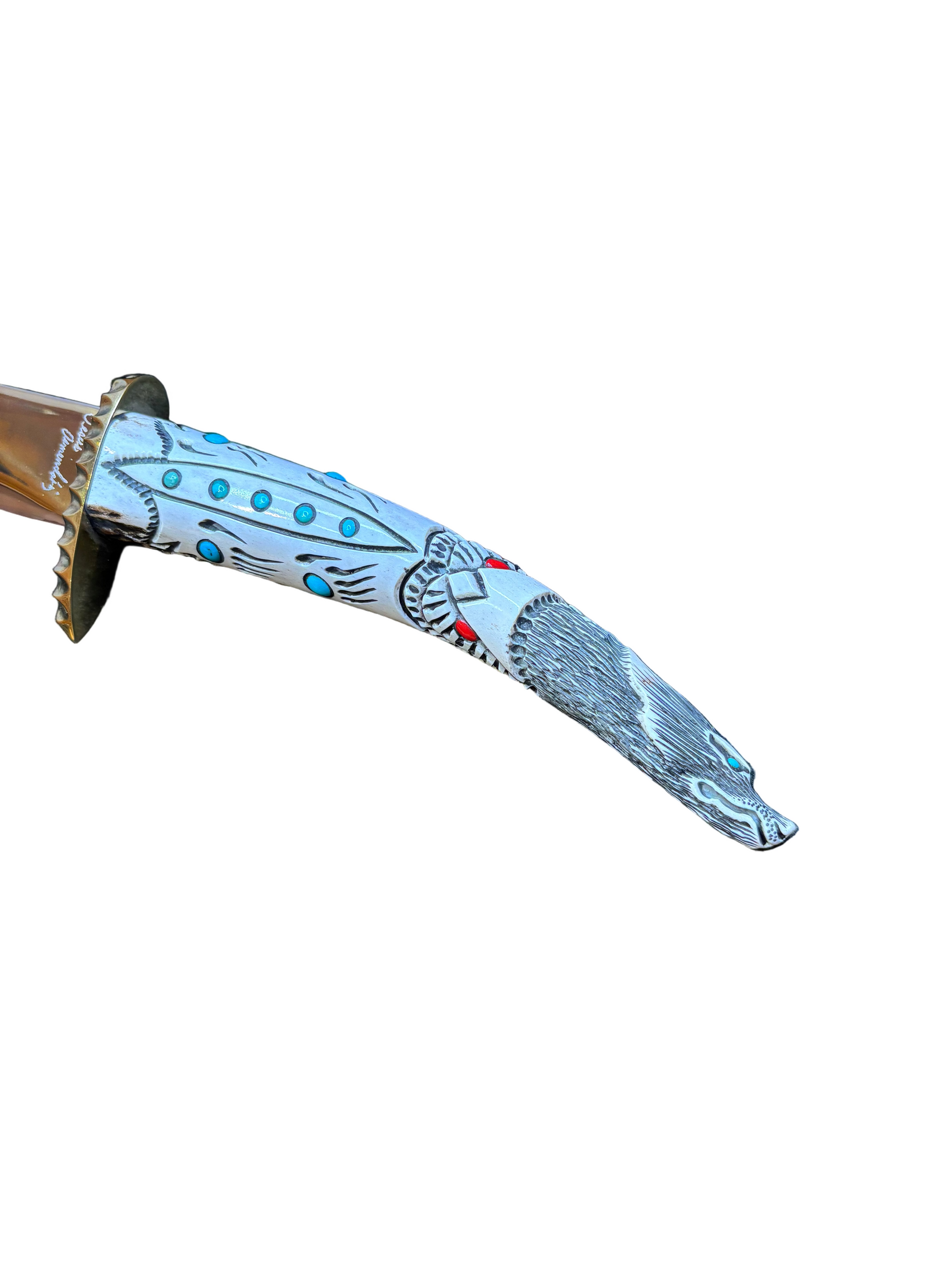 Hand Crafted deer Antler with turquoise and Mediterranean corral inlay, 440 stainless steel Blade