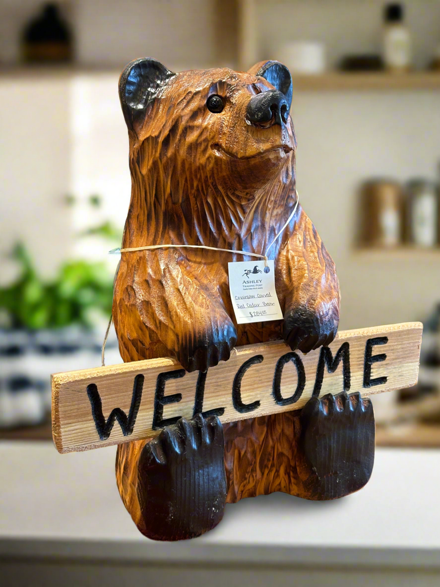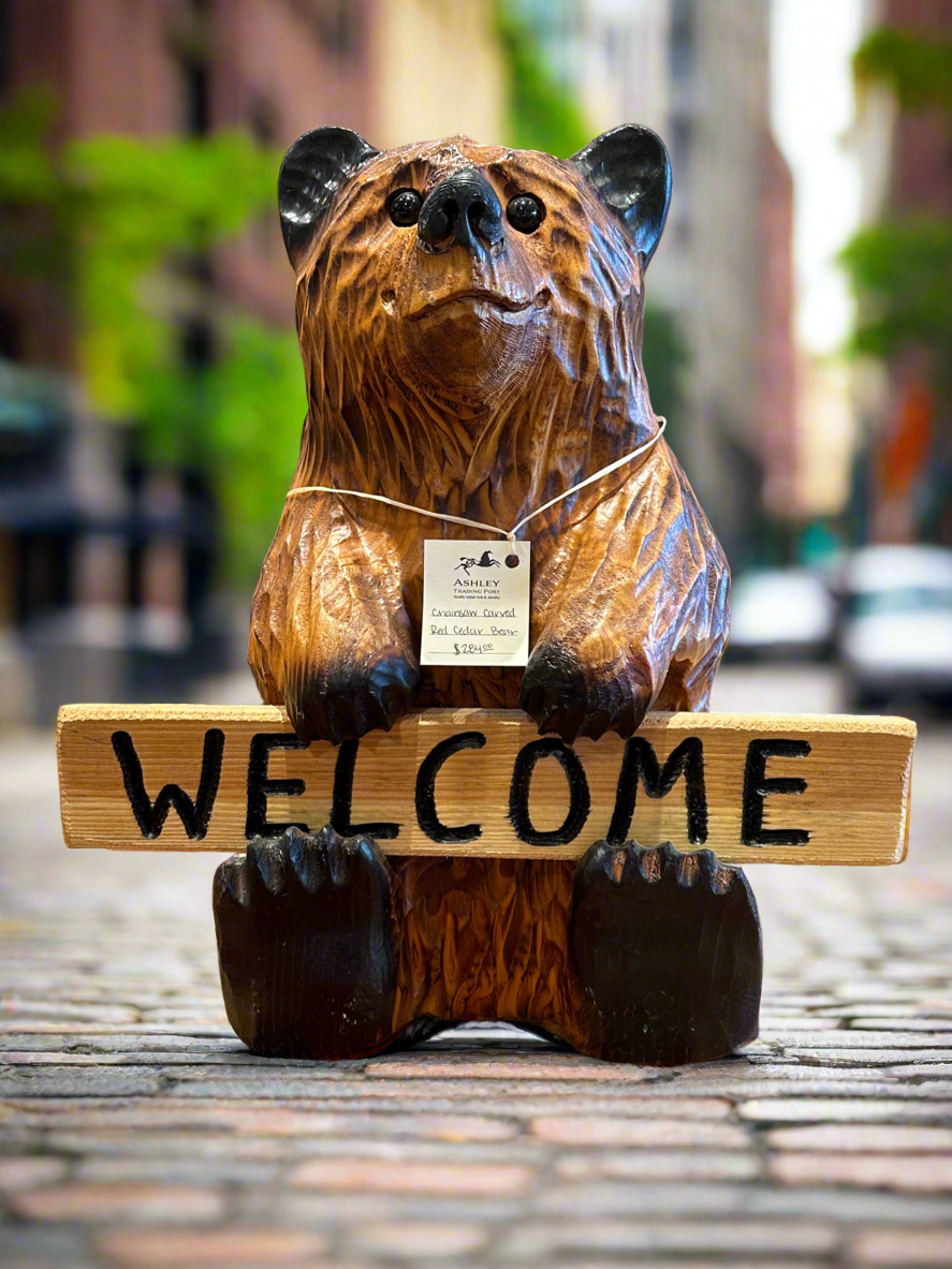 Chainsaw carved red ceder Bear Welcome or Go Away