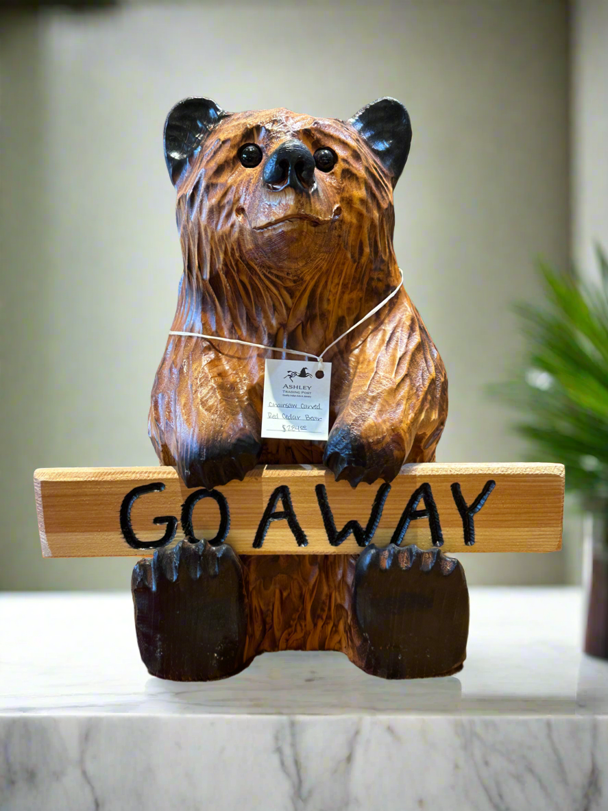 Chainsaw Carved red Ceder Bear Welcome sign or Go Away Reversable.
