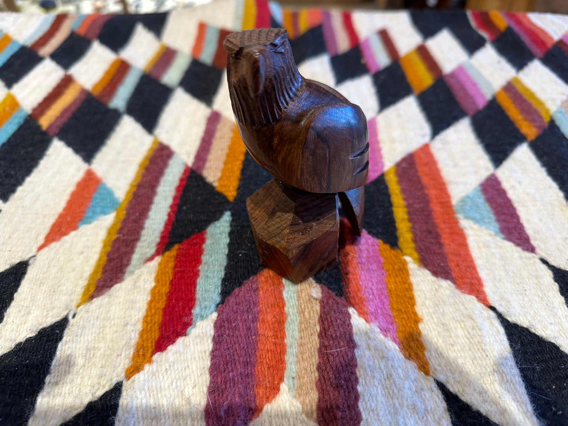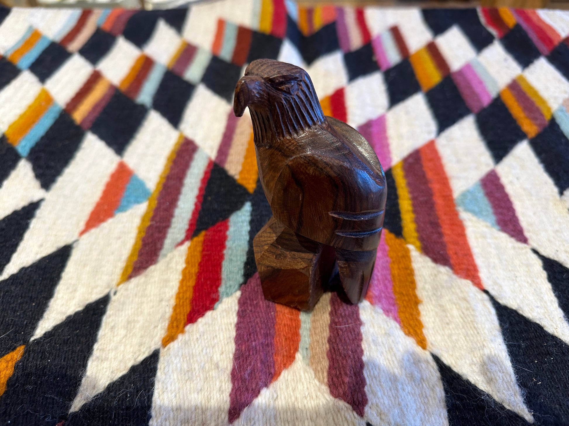 A unique Piece of art from the Sonoran Desert of Arizona and northern Mexico. It was handcrafted from desert Ironwood ( Olneya tesota ), very dense and heavy wood of intriguing origin. To be suitable for carving the wood must be exposed to the extreme of the climate conditions that only exist in the desert. The government has restricted the harvesting of living ironwood trees. To preserve your art piece for years to come, polish with a soft cloth and occasionally apply a light coat of neutral pace type shoe wax.