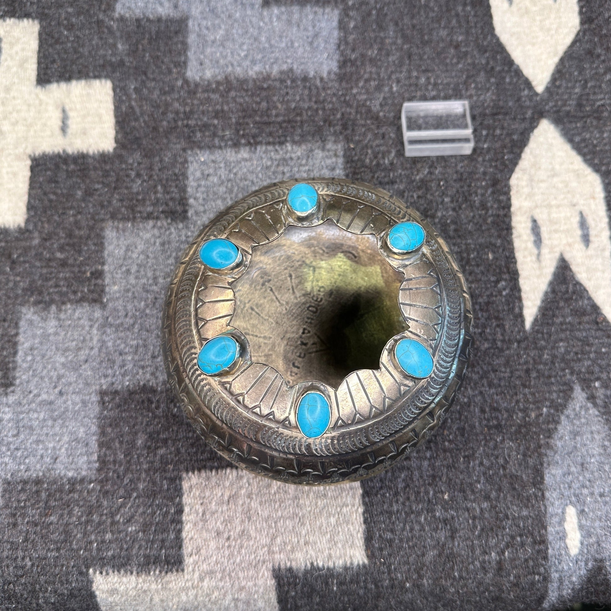 Designed by Jason Lenox in Dallas TX, this piece of silver is handcrafted in Central Highlands of Mexico. All of the tooling is done by hand. The metal is German silver consisting of copper, nickel, and zinc.