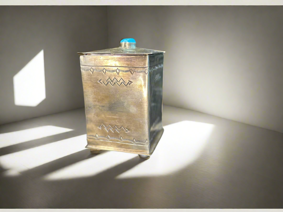 Designed by Jason Lenox in Dallas TX, this piece of silver is handcrafted in Central Highlands of Mexico. All of the tooling is done by hand. The metal is German silver consisting of copper, nickel, and zinc.