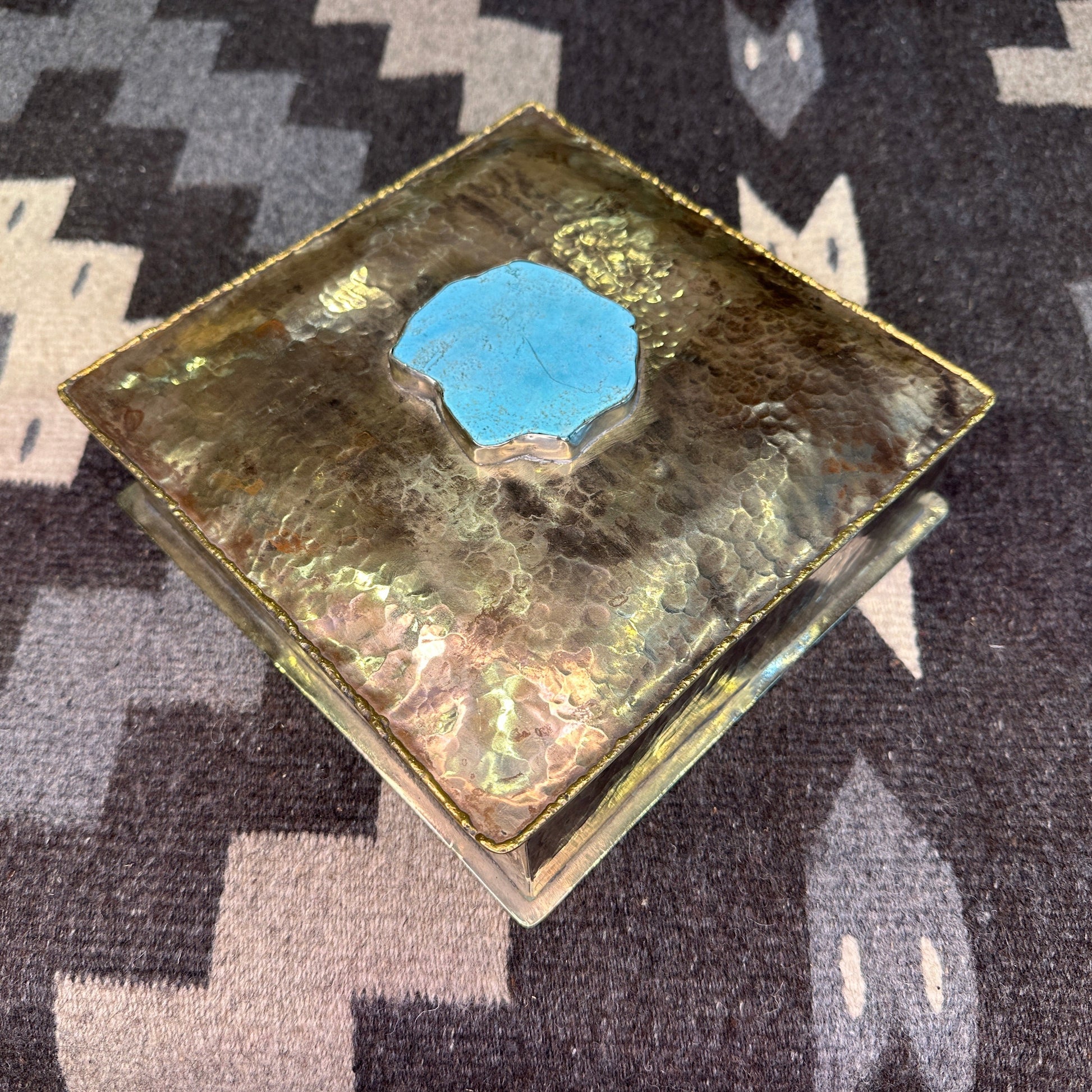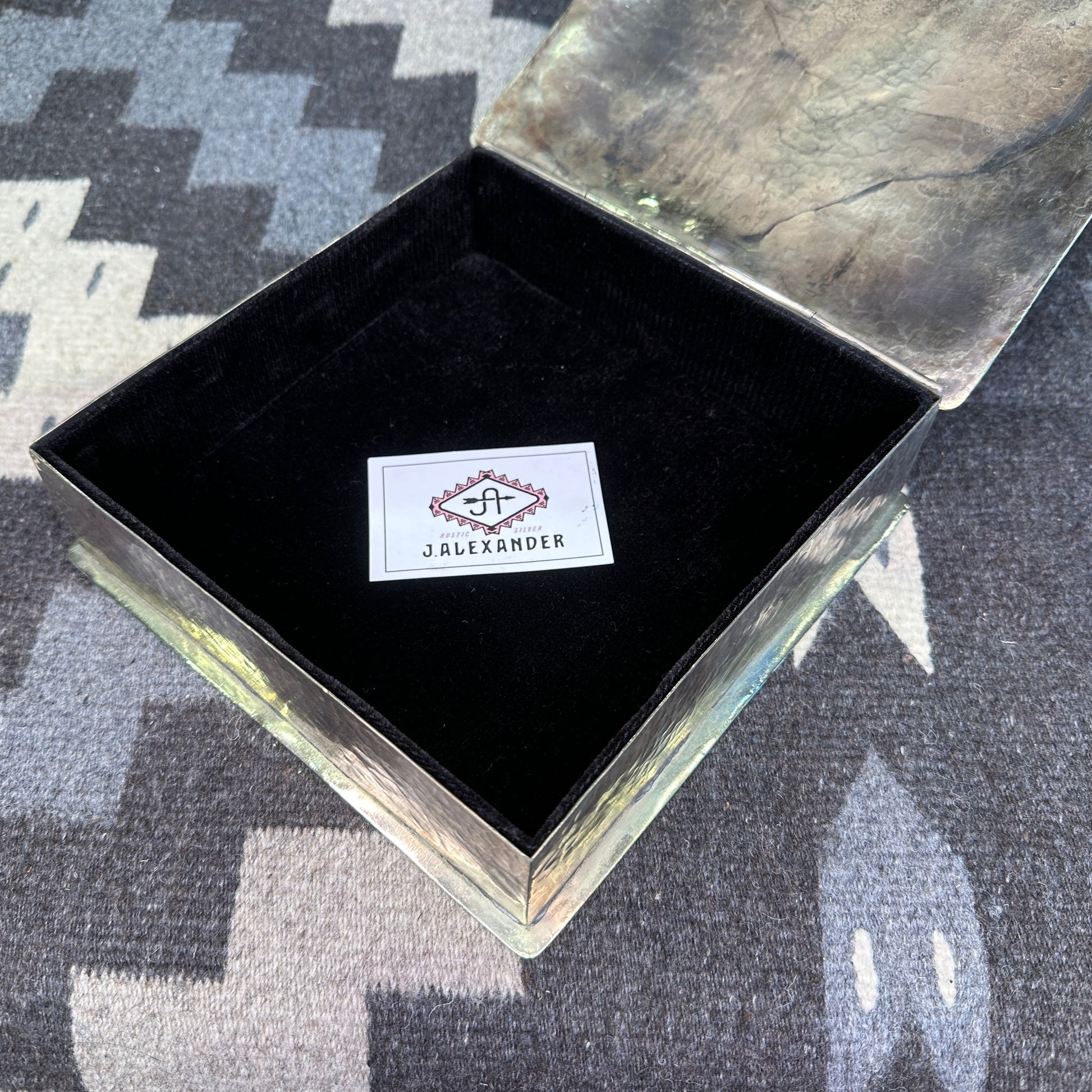 Designed by Jason Lenox in Dallas TX, this piece of silver is handcrafted in Central Highlands of Mexico. All of the tooling is done by hand. The metal is German silver consisting of copper, nickel, and zinc.
