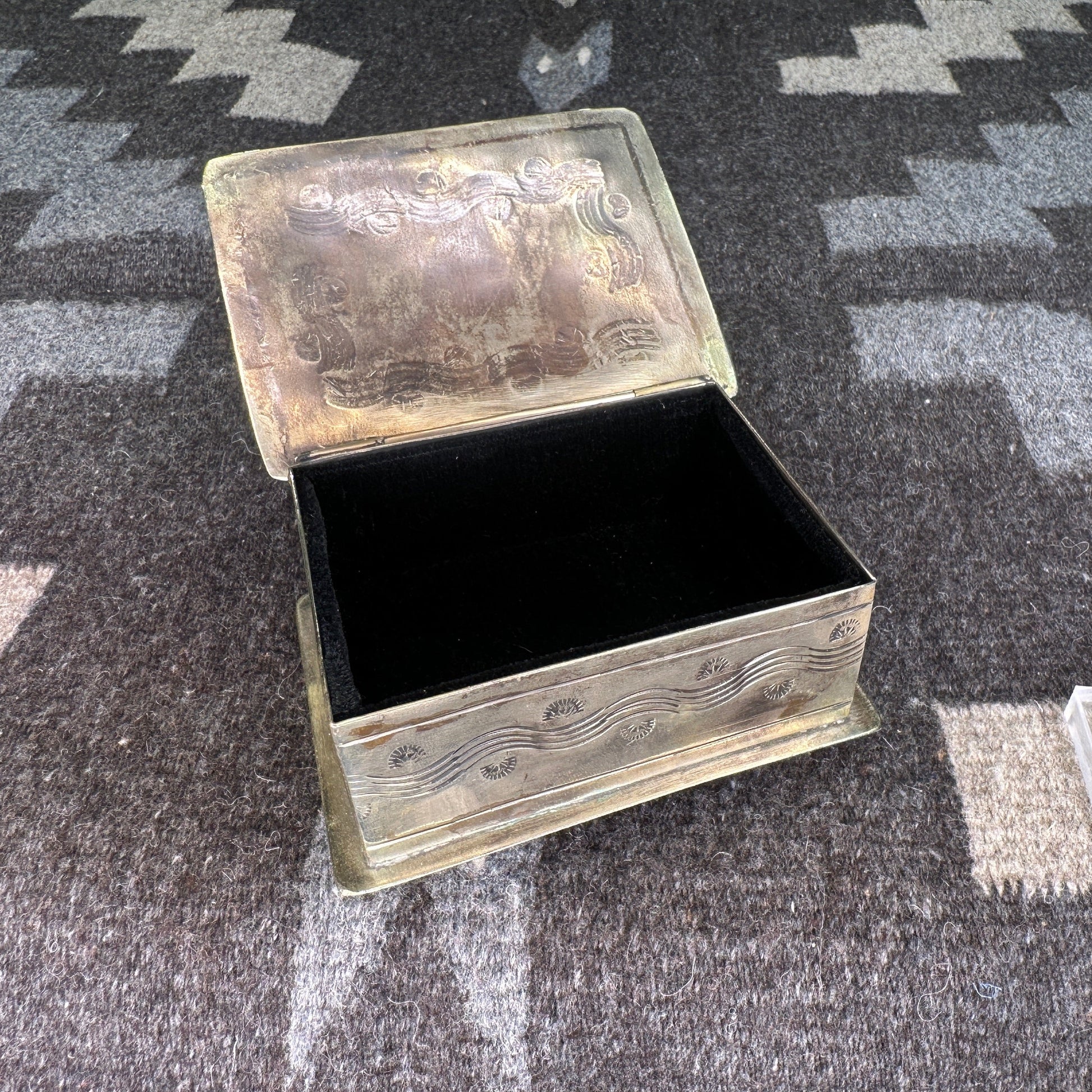 Designed by Jason Lenox in Dallas TX, this piece of silver is handcrafted in Central Highlands of Mexico. All of the tooling is done by hand. The metal is German silver consisting of copper, nickel, and zinc.