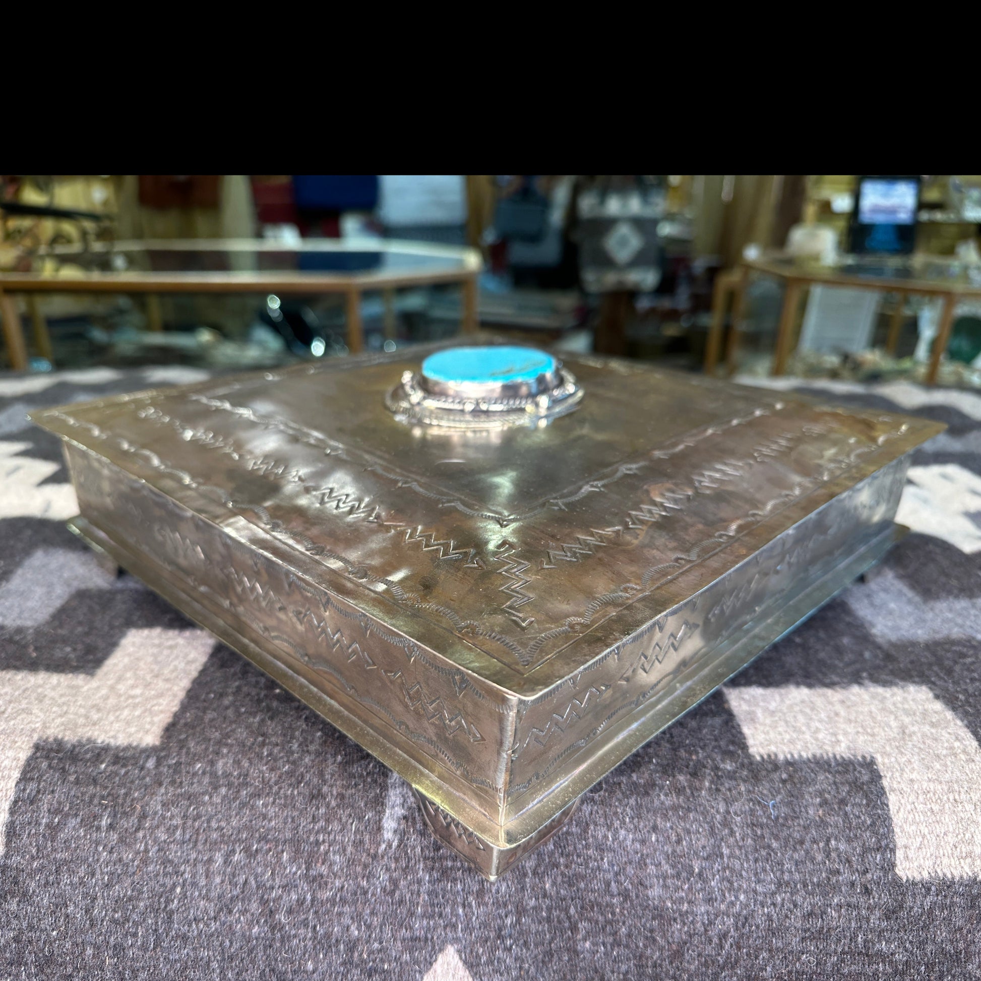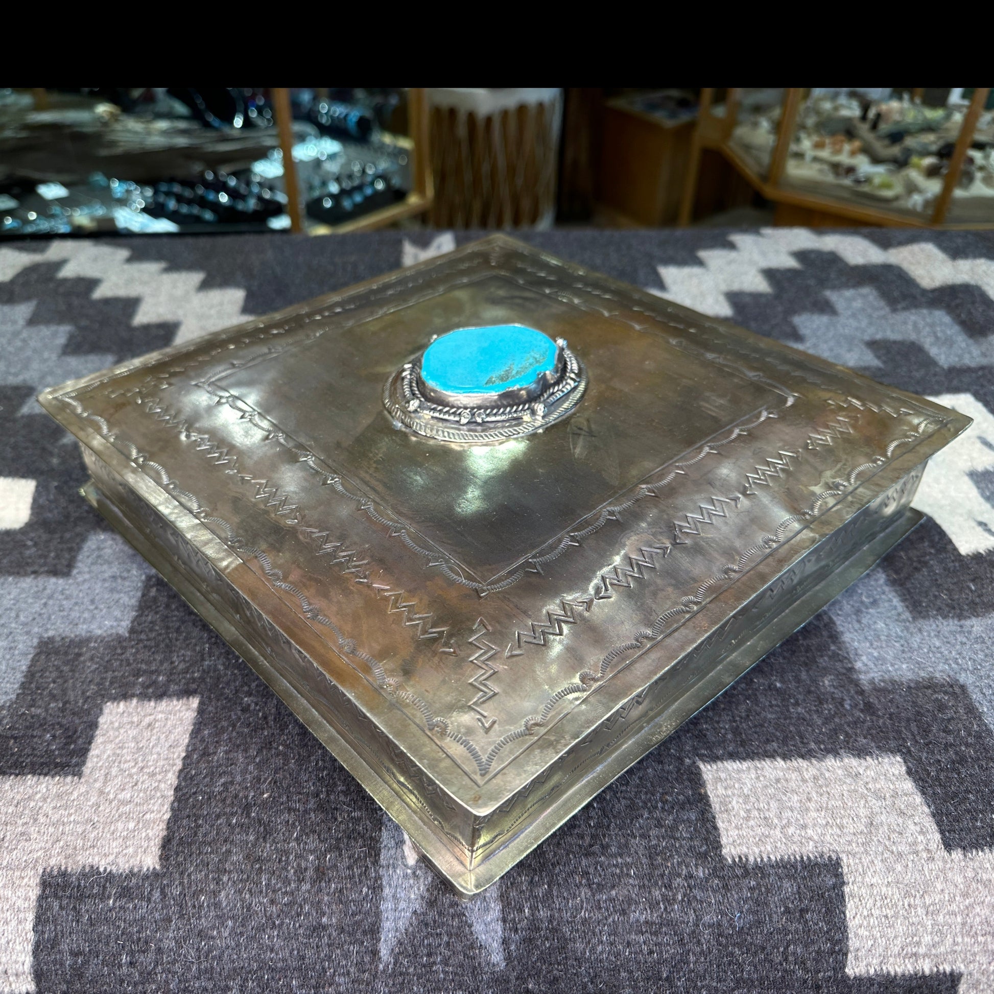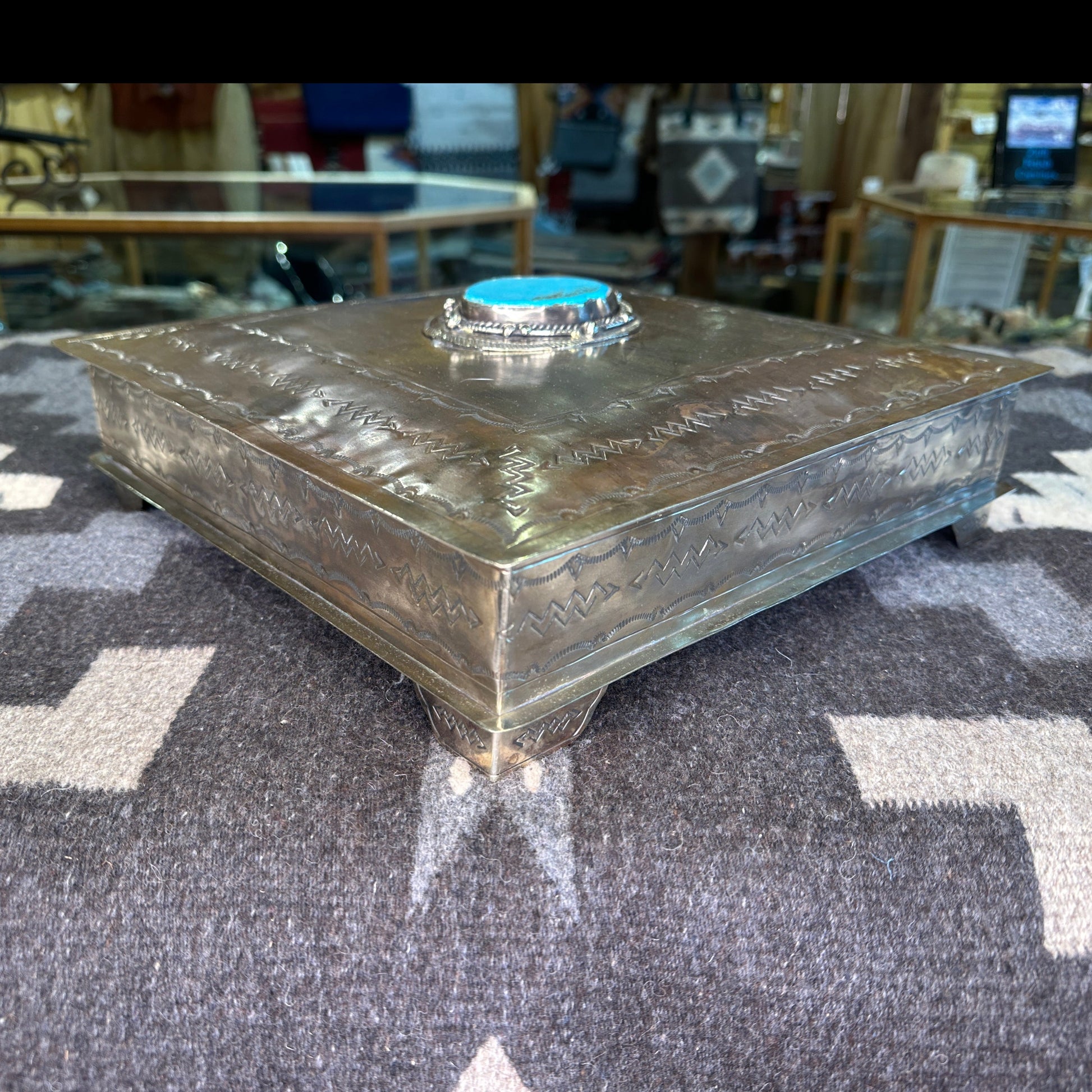 Designed by Jason Lenox in Dallas TX, this piece of silver is handcrafted in Central Highlands of Mexico. All of the tooling is done by hand. The metal is German silver consisting of copper, nickel, and zinc.