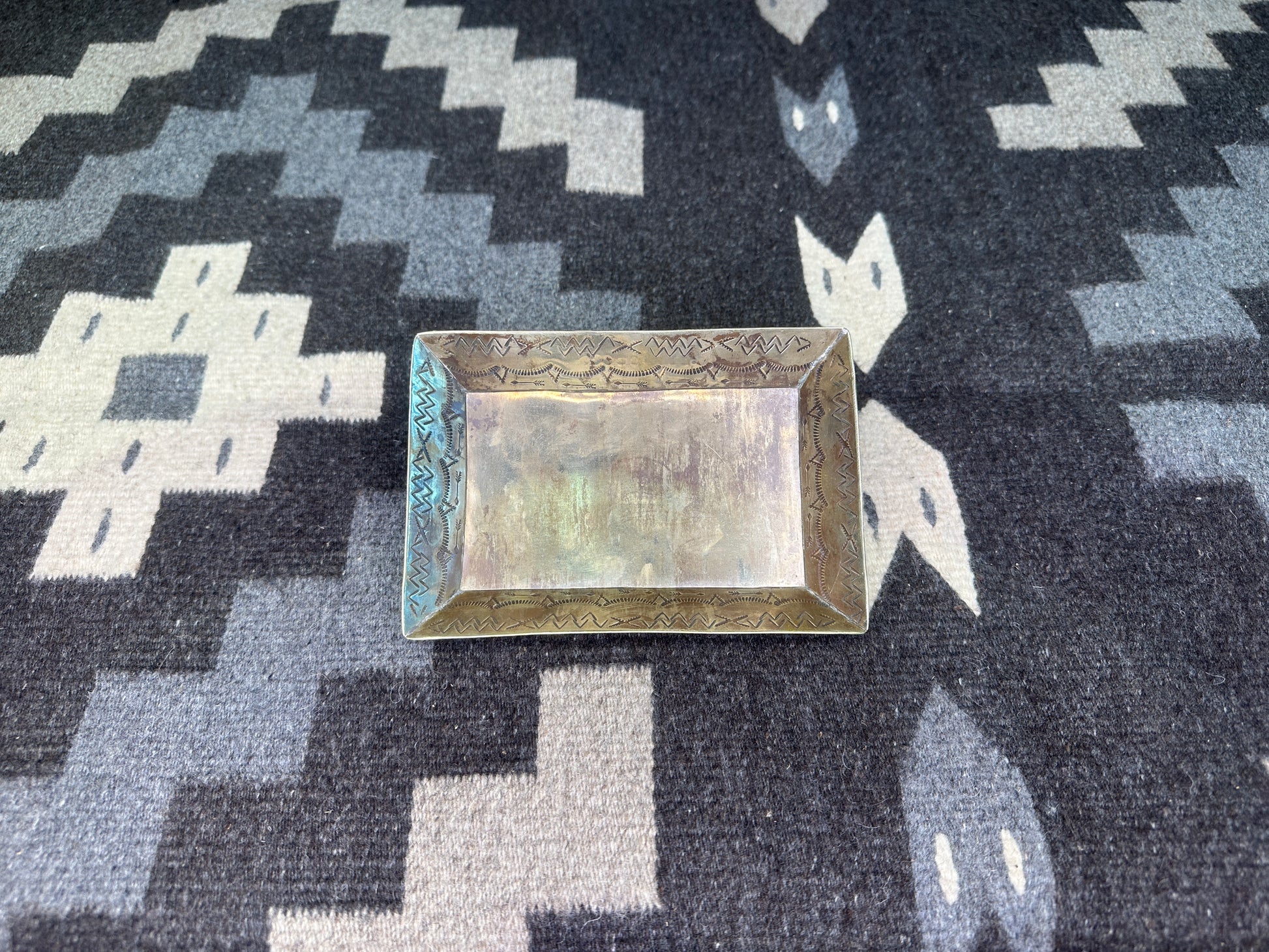 Designed by Jason Lenox in Dallas TX, this piece of silver is handcrafted in Central Highlands of Mexico. All of the tooling is done by hand. The metal is German silver consisting of copper, nickel, and zinc.