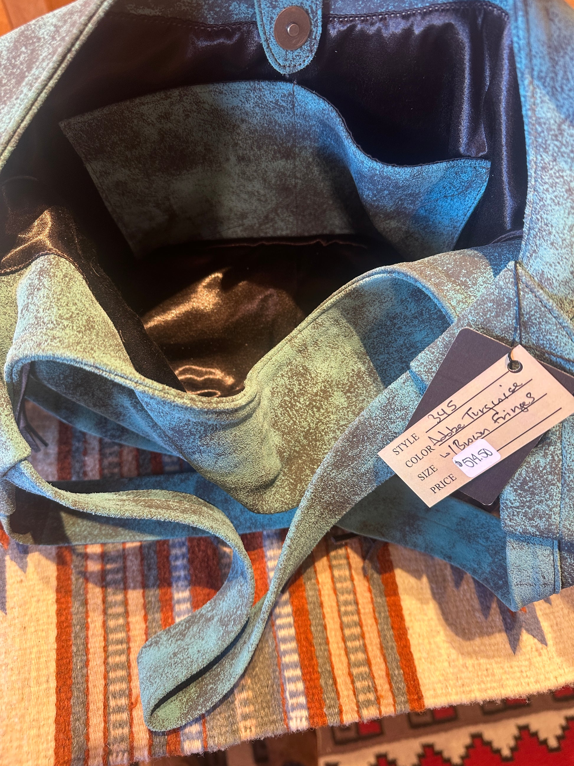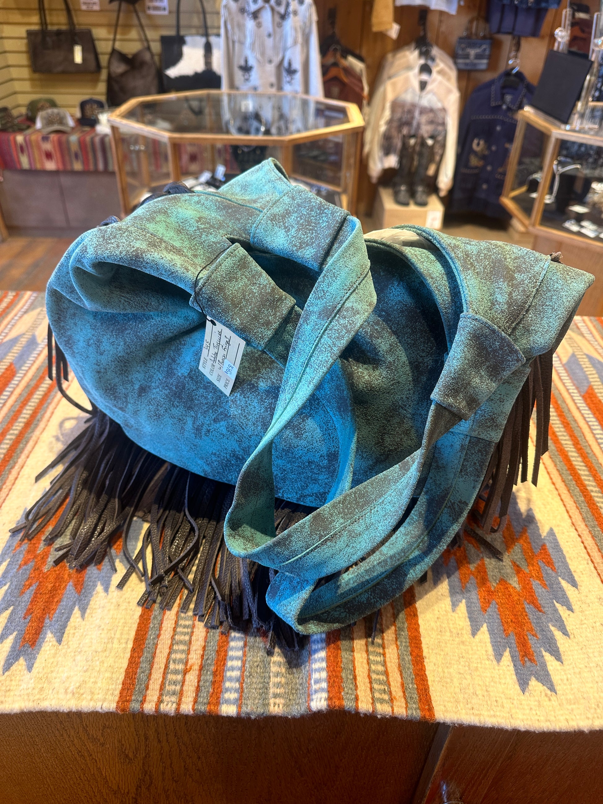 Adobe Turquoise w/ Brown Fringes. Double straps.