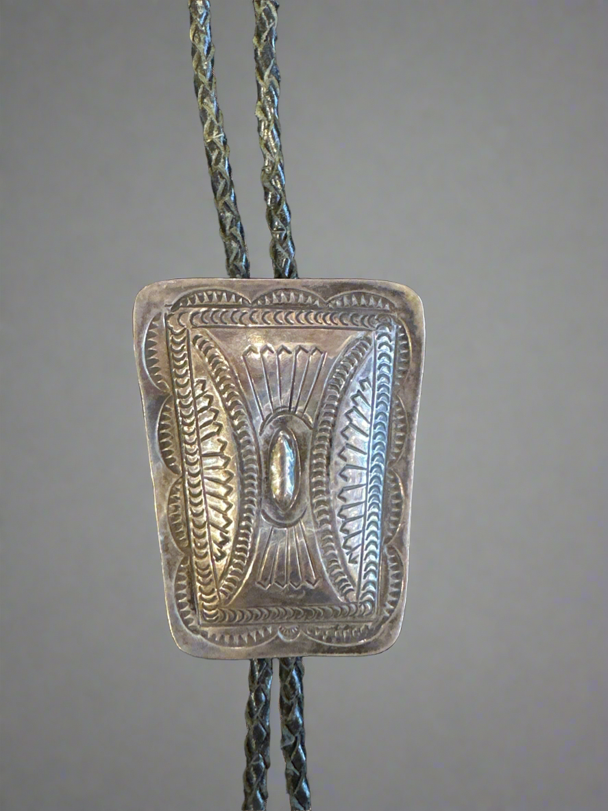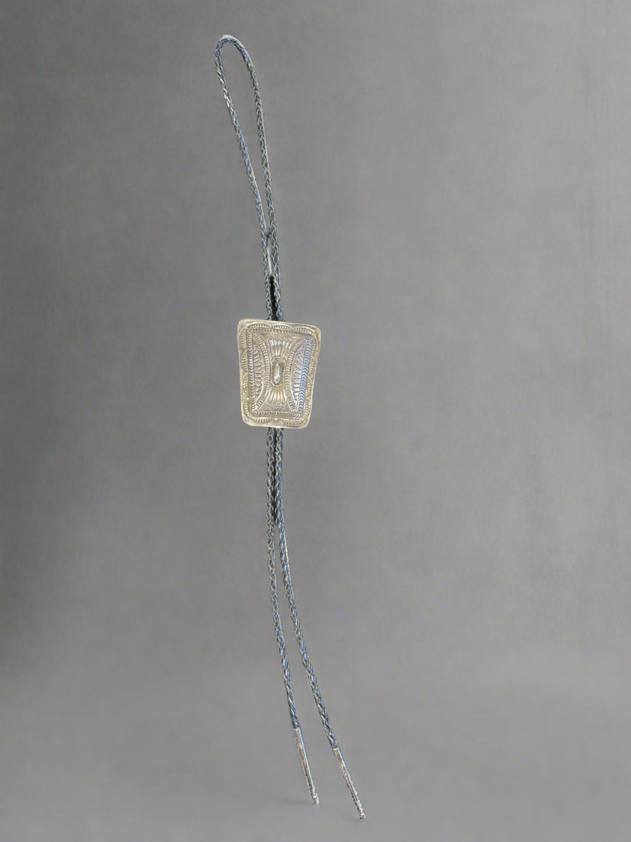 Elevate your style with our Native American bolo-tie, handcrafted by Super Smith. Made with precision and attention to detail, this bolo-tie is a statement piece that adds a touch of authenticity to your wardrobe. Embrace the rich culture and heritage with this exclusive accessory.