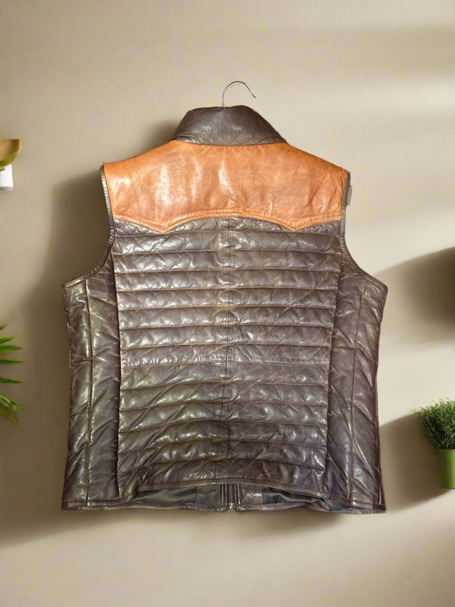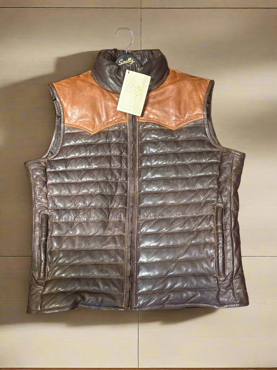 This Scully Leather leatherwear vest features a zip front, providing easy access and a secure fit. Made with high-quality leather, it offers durability and style. Perfect for those in need of a versatile and functional vest for everyday wear.