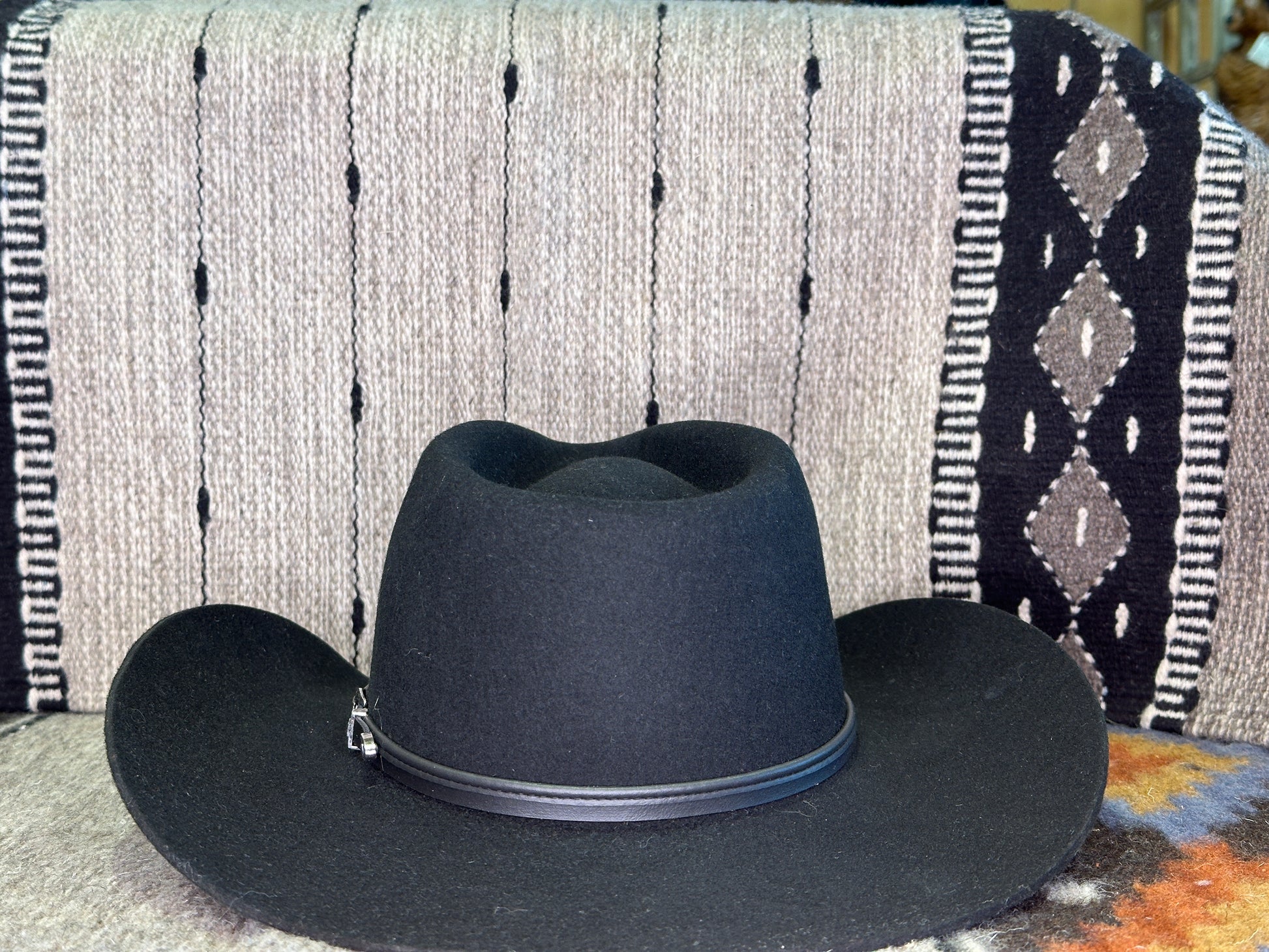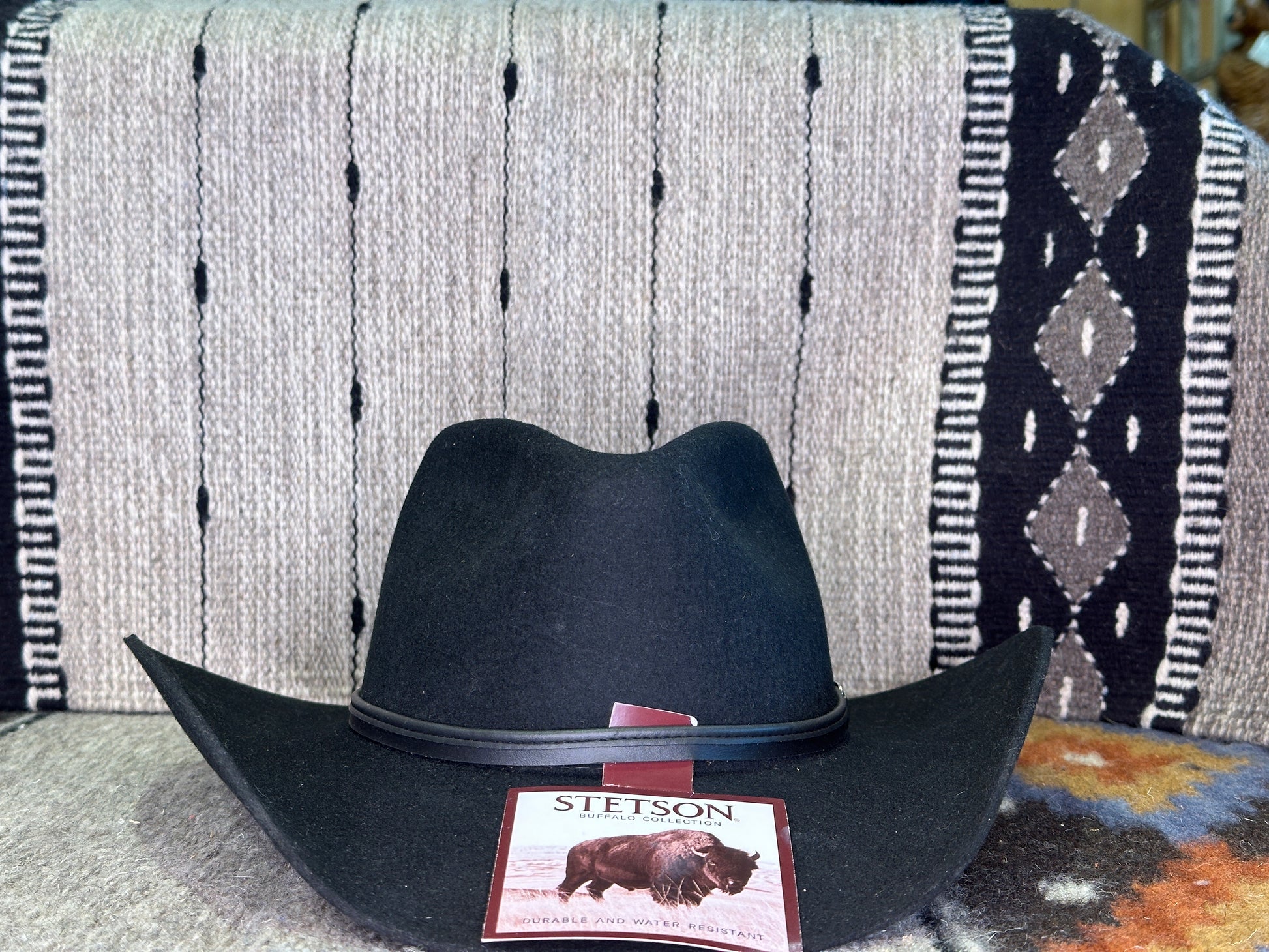 Crafted for durability and water resistance, the Seneca 4X Cowboy Hat stands up to long days outdoors. Made from high-quality buffalo fur felt, it boasts a pinch front crown, an interior leather sweatband, and a tooled leather hatband with a silver buckle set. This hat is part of Stetson's Buffalo Collection, which features Western hats handcrafted from premium all-natural buffalo fibers.