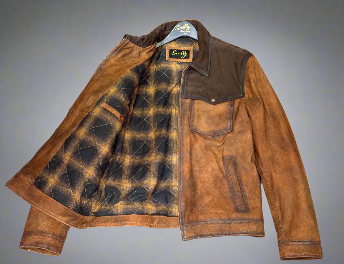 Zip front jacket. Two welt size entry pockets. Two single point chest pockets with snap closure. Adjustable snap cuff.