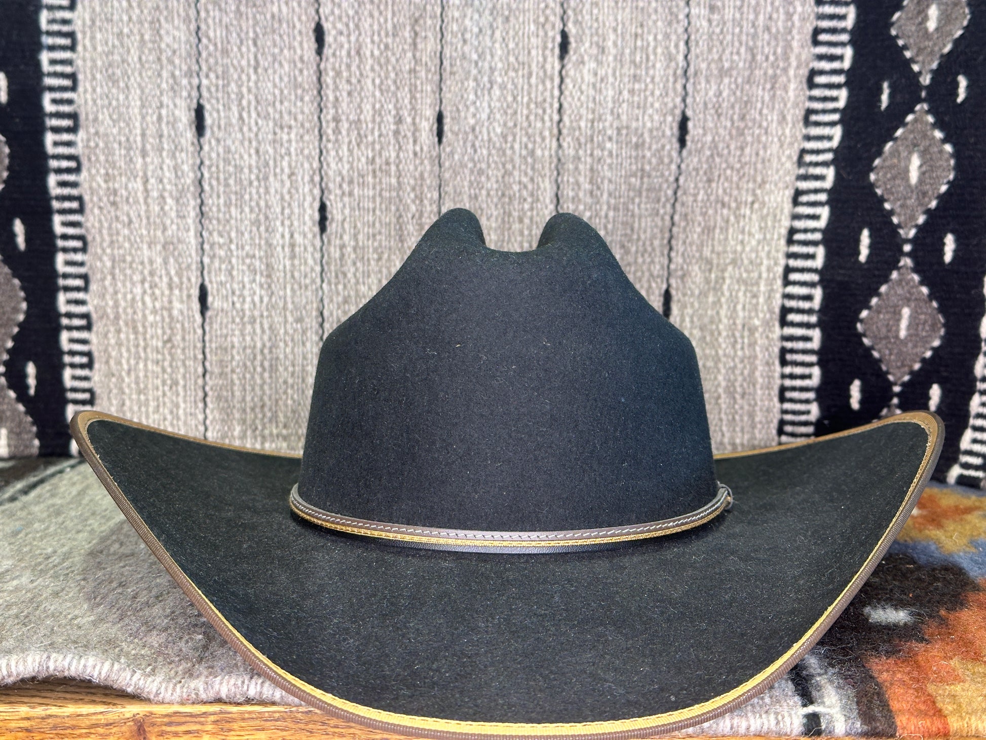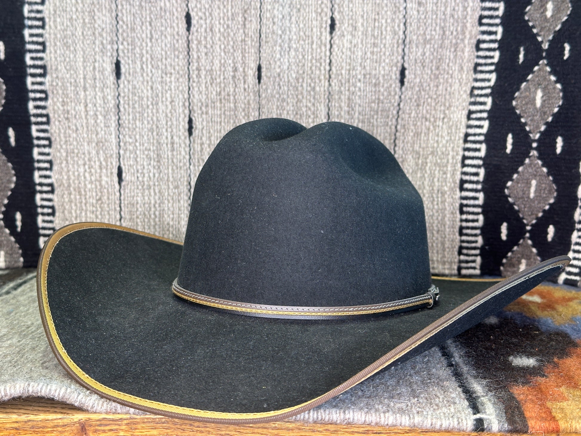The Foothills 3X Wool Felt Cowboy Hat boasts a cattleman crown with a contrasting bound edge brim, complemented by a two-tone stitched leather hatband. Crafted from 3X quality wool felt, it is proudly made in the USA.